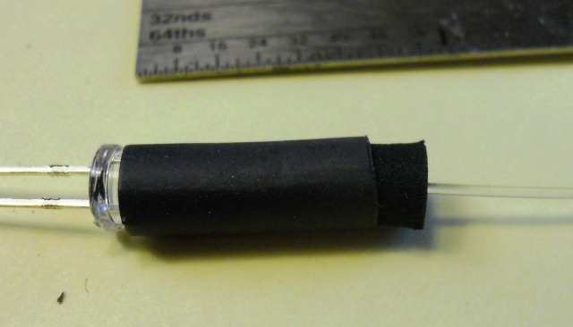 Fiber Optic Adapters to align 5mm LEDs to .030-.080" dia Fiber. This adapter fits over a 5mm LED and then optical fiber can be centered to allow the maximum light to enter the fiber. Adapter consist of an outer tube that fits over the 5mm LED and an inner foam plug that fits into the tube with a small hole in the center of the plug to center the fiber into. Hole is designed to fit .030" diameter fiber, but easily stretches for .040-.080 fiber. Hole can easily be enlarged to use with multiple stands or larger fiber.